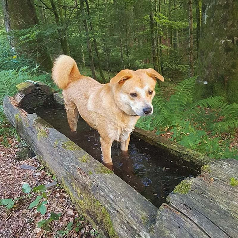 Que ce soit pour une petite promenade matinale ou une longue promenade où vous pourrez pleinement vous imprégner du calme et de la magie de la Forêt-Noire, vous trouverez ici l’environnement idéal pour respirer profondément avec votre chien et profiter pleinement de la liberté.
